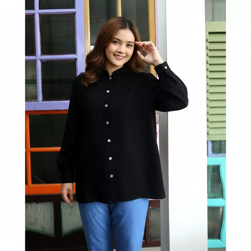 Katrina Cotton Blouse - Atasan Kemeja Polos Wanita HITAM