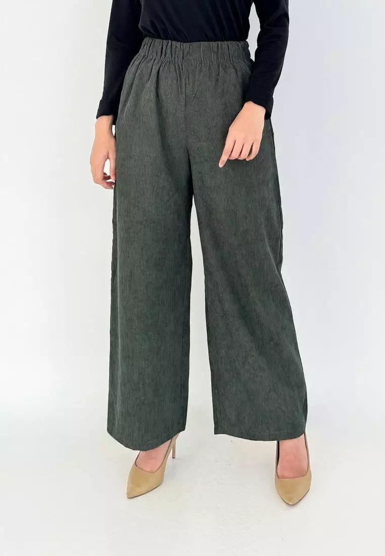 Keily Pants - Celana Palazzo Corduroy GREEN