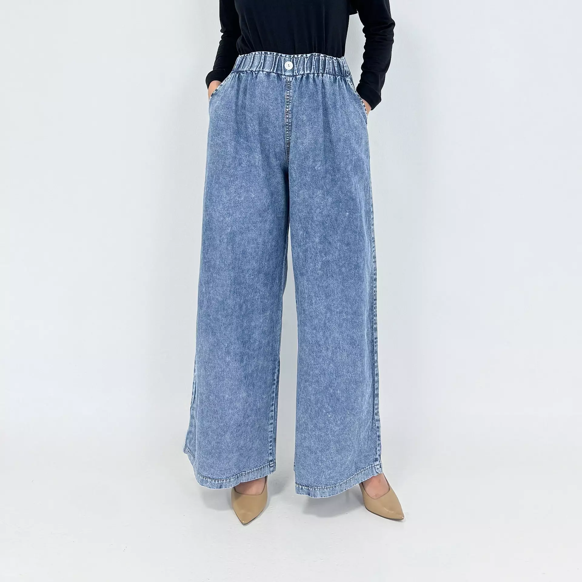 Keisya Wide Leg Pants [SNOW BLUE] Celana Panjang Jeans Muslim Wanita Size L-XXL