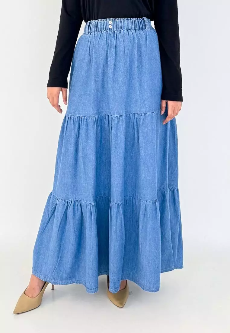 LEZAHRASIGNATURE Arabel Denim Skirt (Rok Panjang Jeans Flare) Biru muda