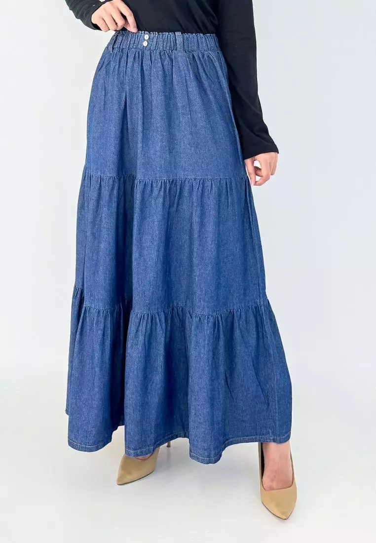 LEZAHRASIGNATURE Arabel Denim Skirt (Rok Panjang Jeans Flare) Biru Tua