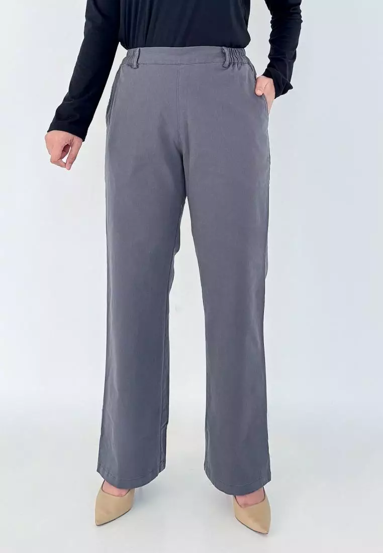 LEZAHRASIGNATURE Celana Panjang Basic Wanita - Abu Tua