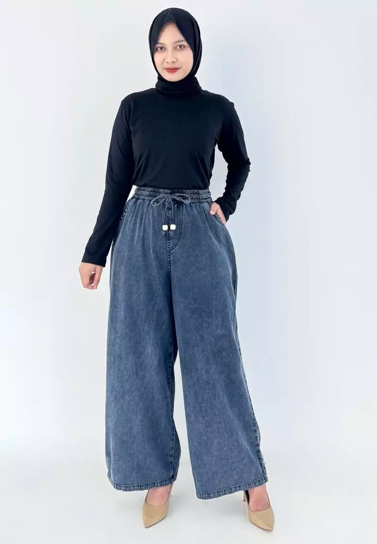 LEZAHRASIGNATURE Palazzo Emily - Celana Panjang Kulot Denim Wanita - Hitam Snow
