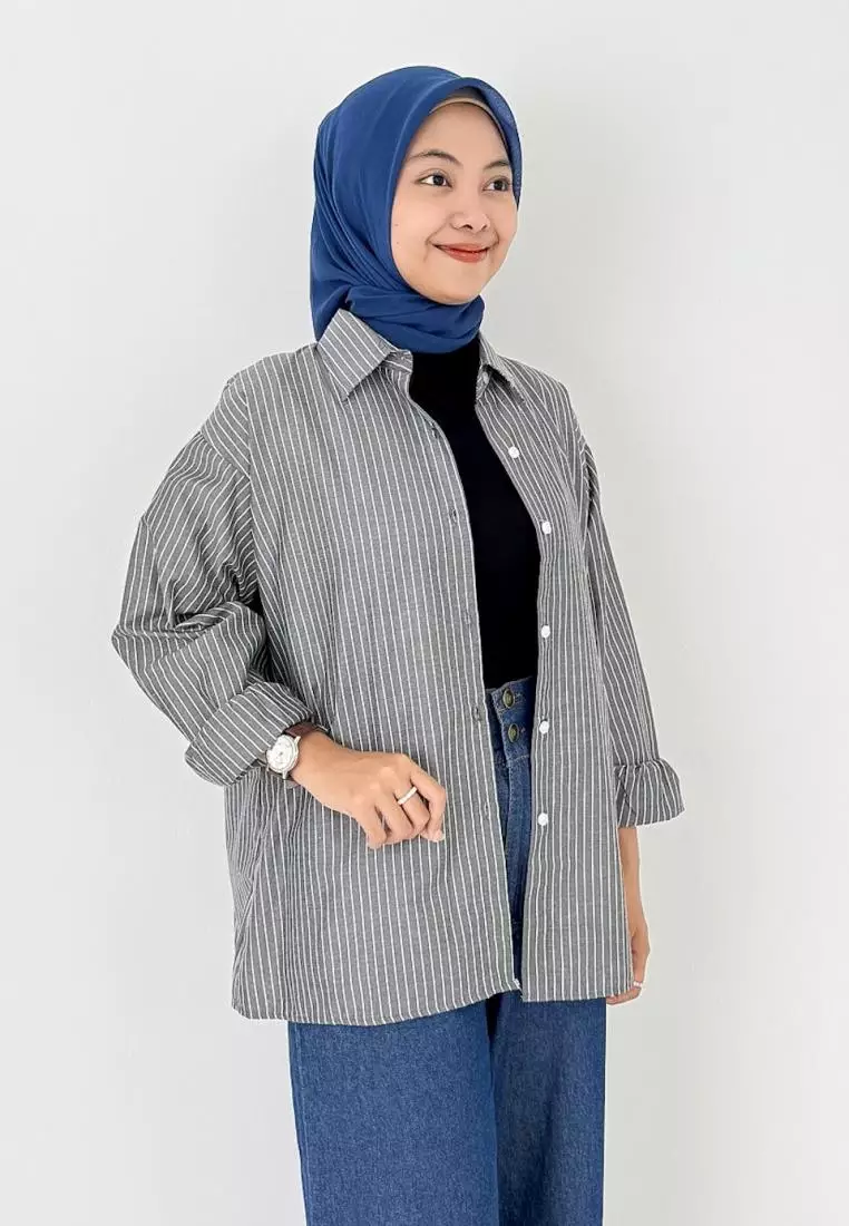 LEZAHRASIGNATUREOversized Cotton Stripe Shirt (Kemeja Katun Wanita) LD 120 cm - Hitam299000.00239000.00