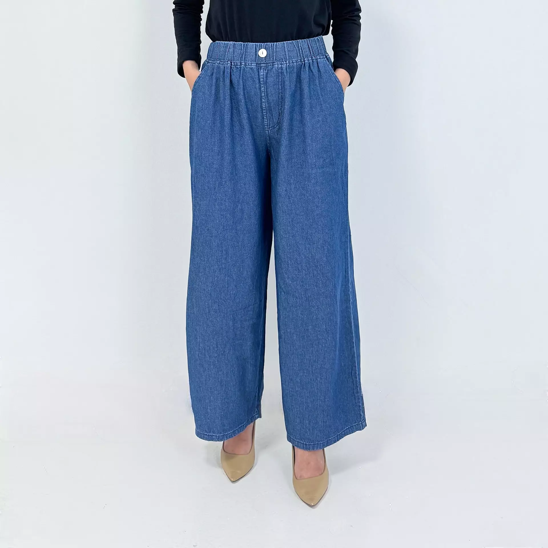 Palazzo Denim Keisya [BIRU] Celana Jeans Wanita Panjang 102 cm