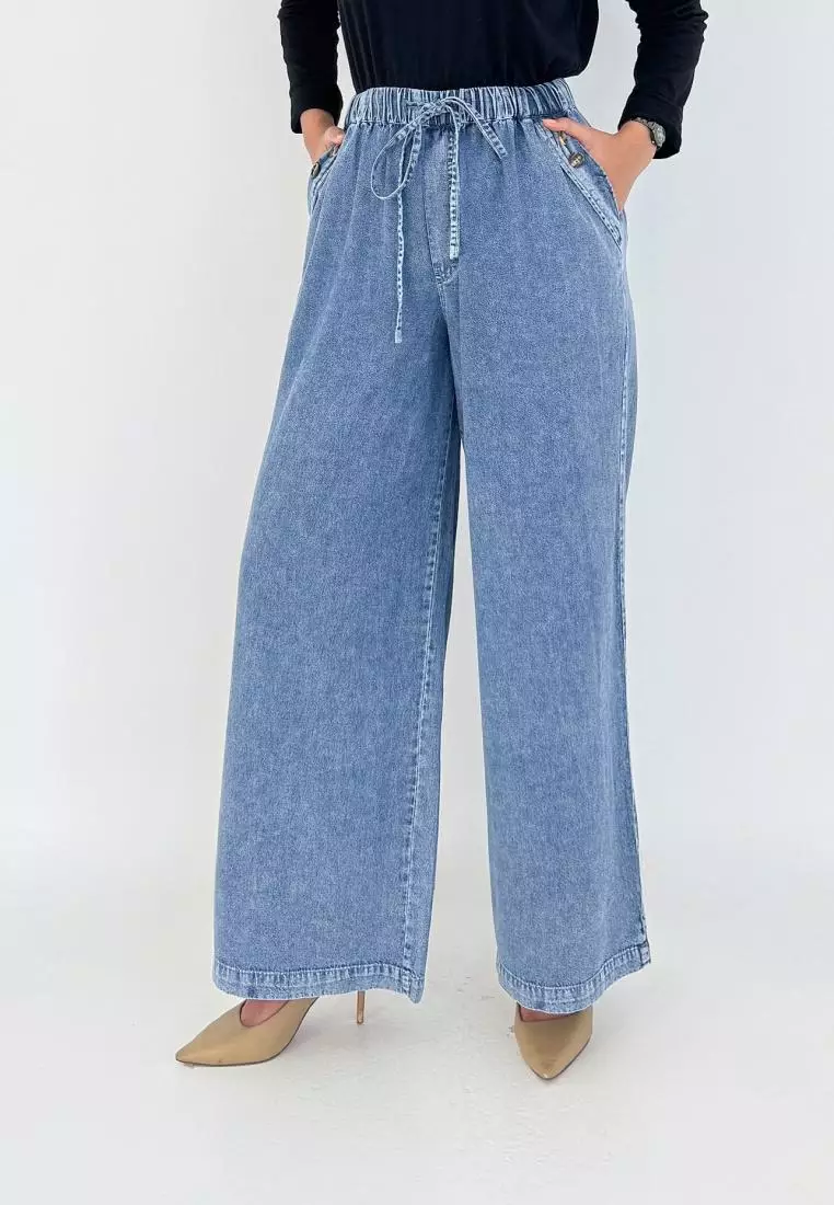 Palazzo Soft Jeans Emy - Celana Kulot Pinggang Karet