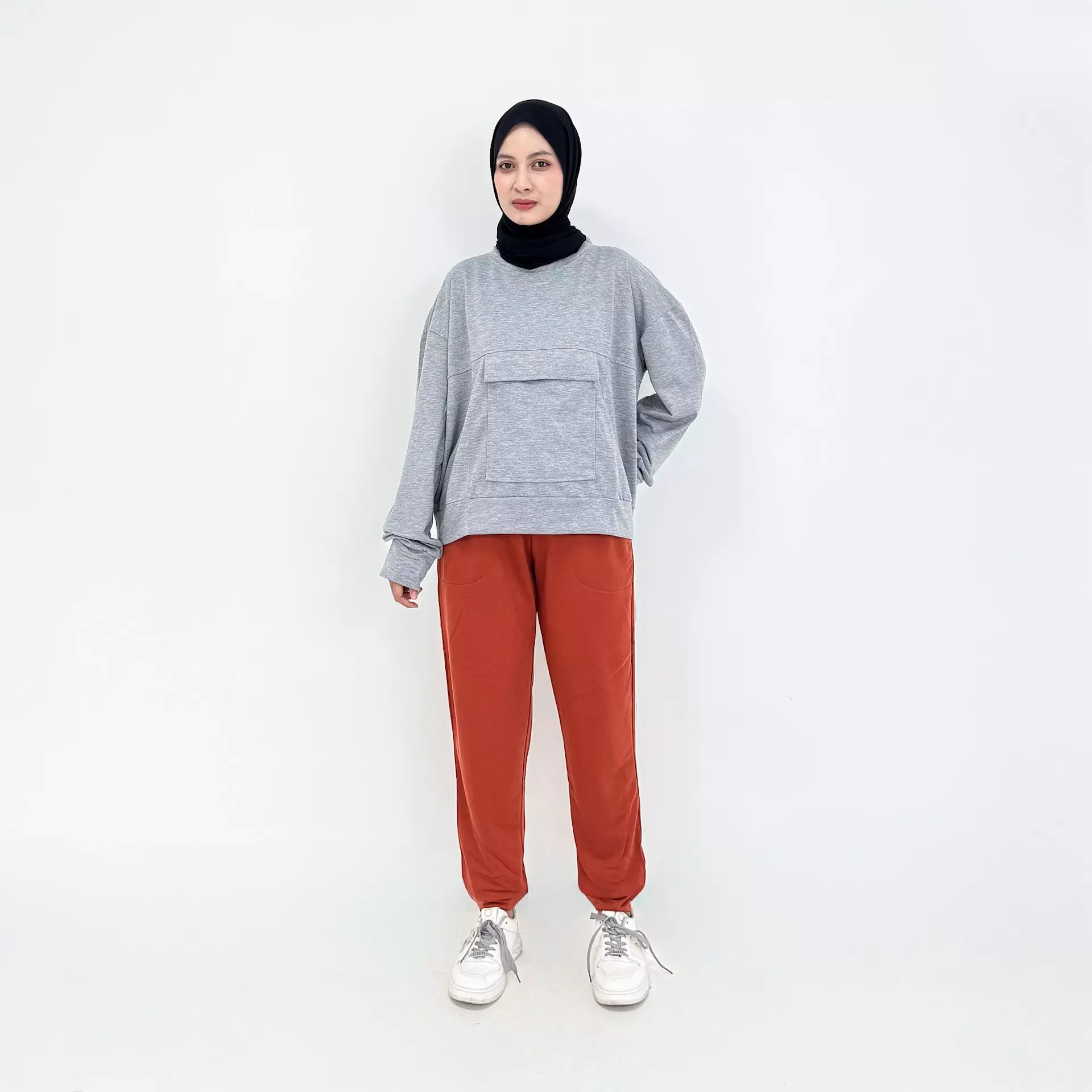 Raima Set Sporty Jogger Pants GREY TERACOTA Setelan Baju Olahraga Wanita