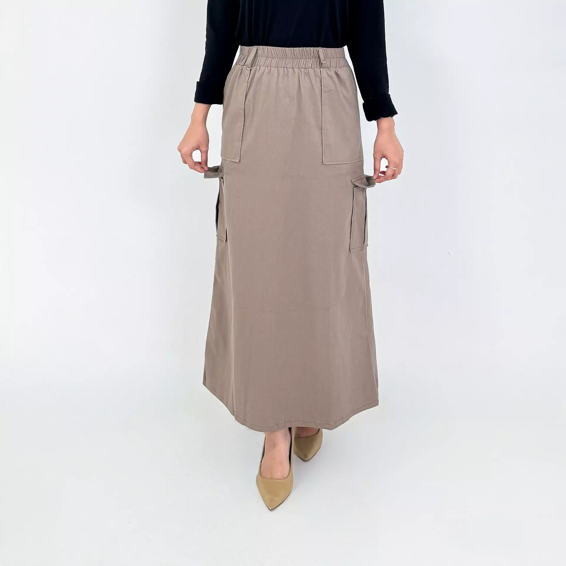 Rok Panjang Cargo Twill Keisha - COKLAT