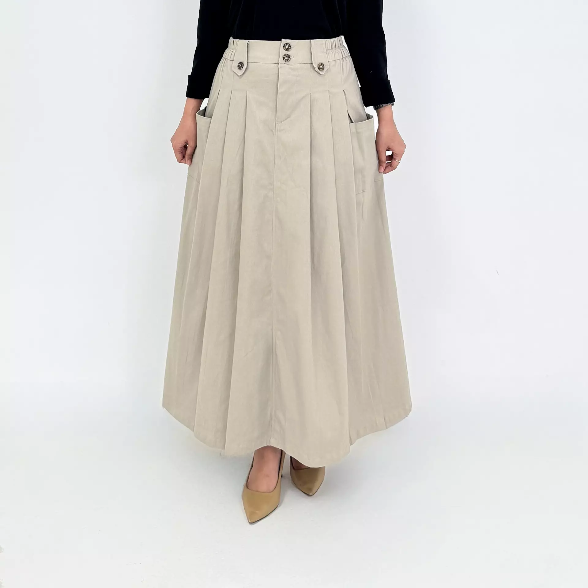 Rok Panjang Flare Basic Mika - KREM