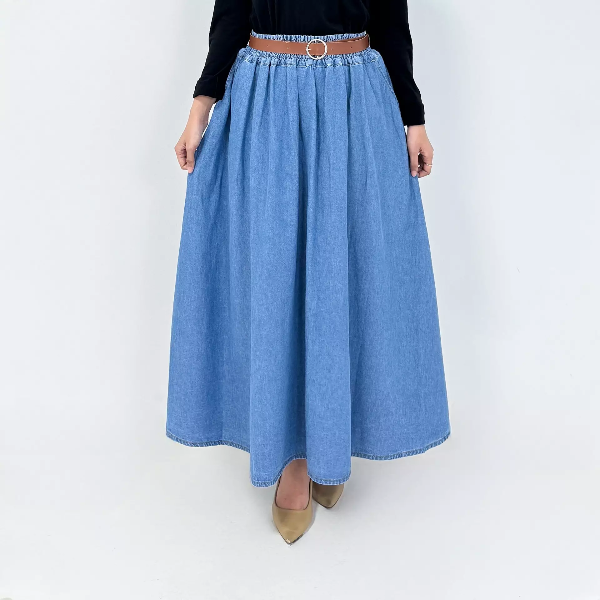 Rok Panjang Jeans Wanita - Audrey Maxi Skirt FREE BELT