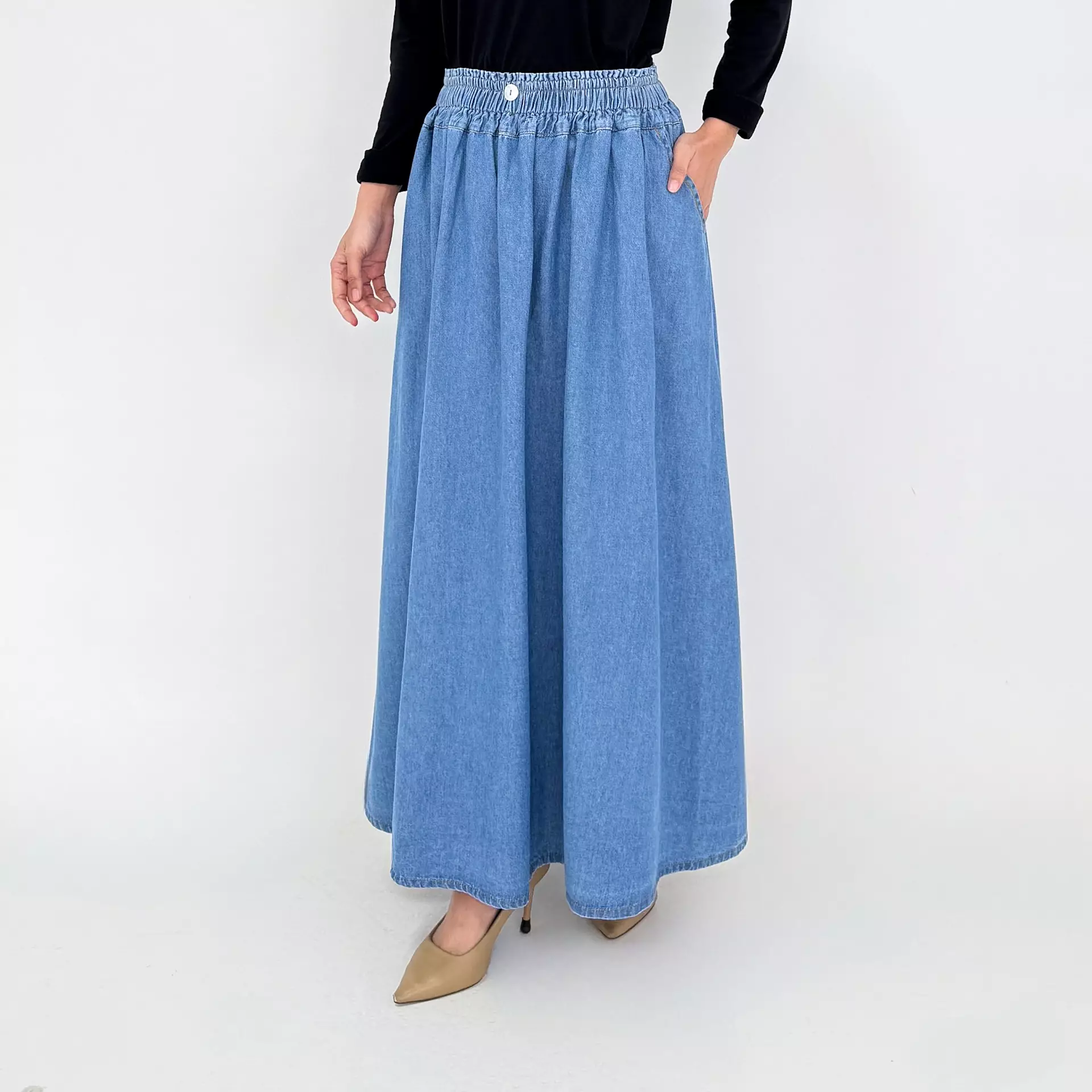 Rok Panjang Jeans Wanita - Calista Denim Midi Skirt
