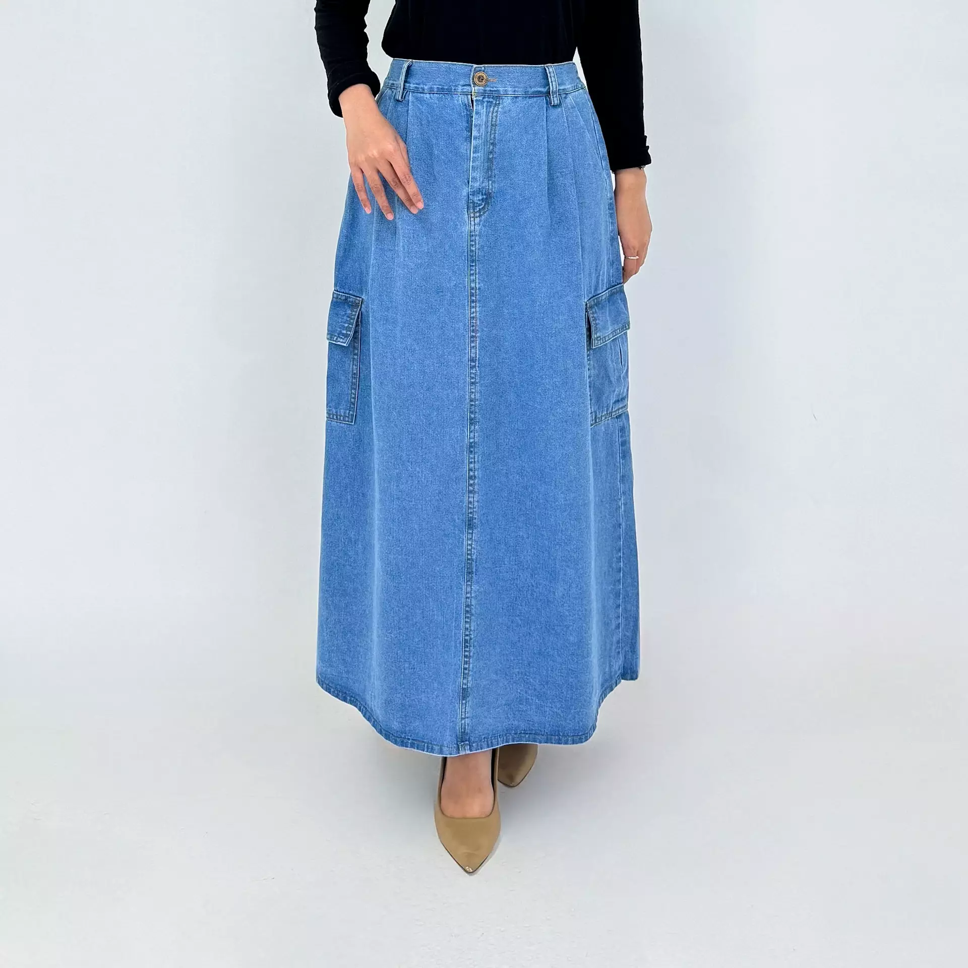 Rok Panjang Jeans Wanita LONG SKIRT DENIM CARGO BASIC