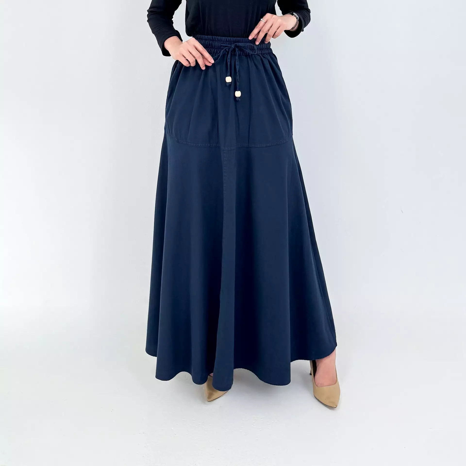 Sarah Cotton Skirt [NAVY] Rok Panjang Polos Flare
