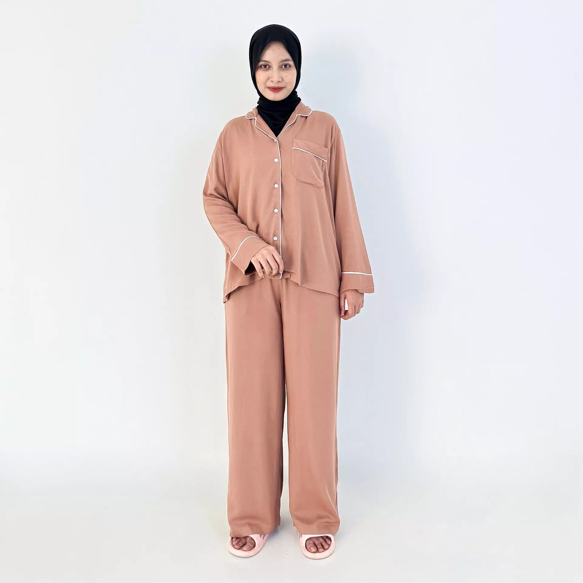 LEZAHRASIGNATURESerena Pajama Sets | Size L-XXL COKLAT MUDA | Setelan Baju Tidur Lengan Panjang Wanita Katun499000.00399000.00