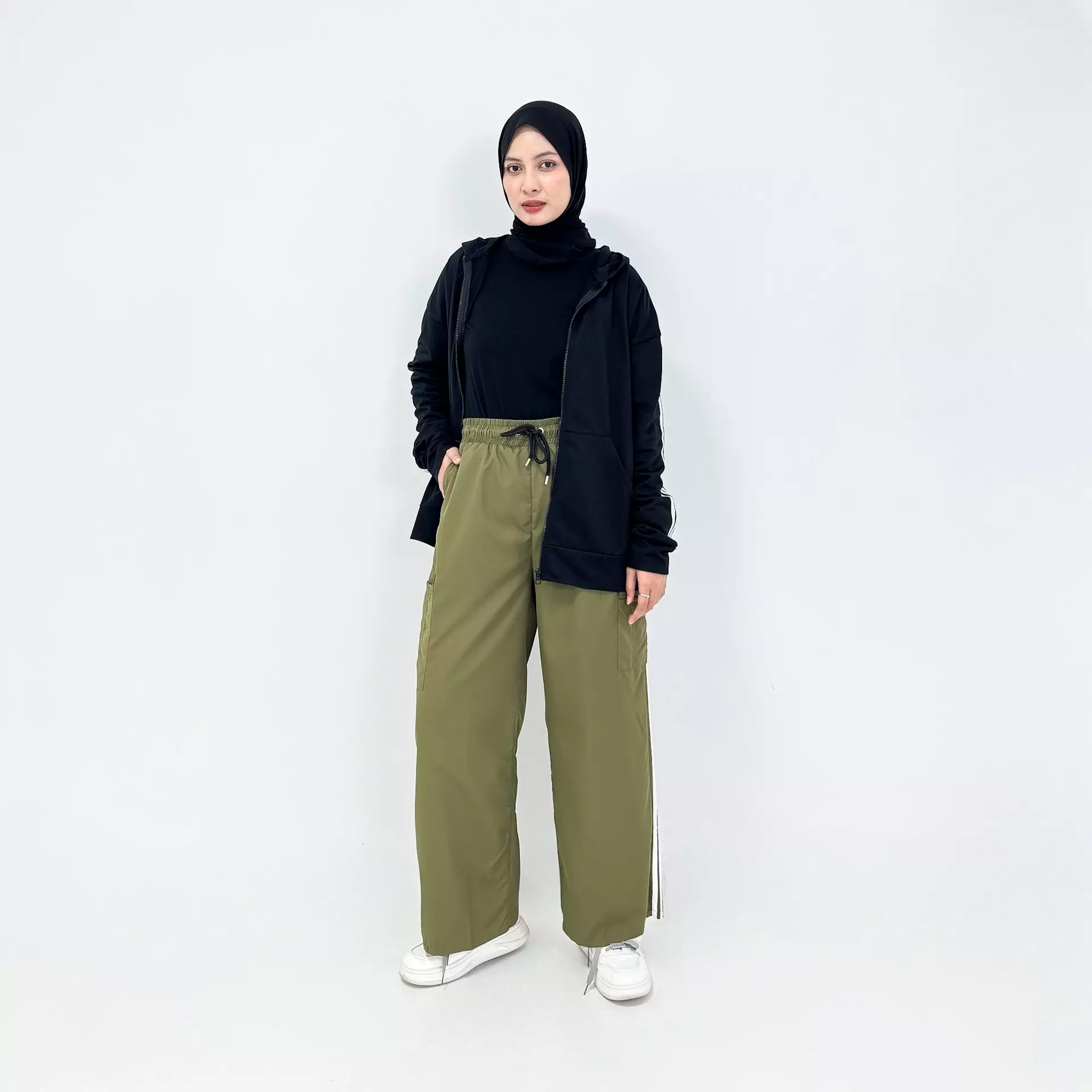 Set Sporty Jacket Manda HITAM OLIVE Setelan Baju Olahraga