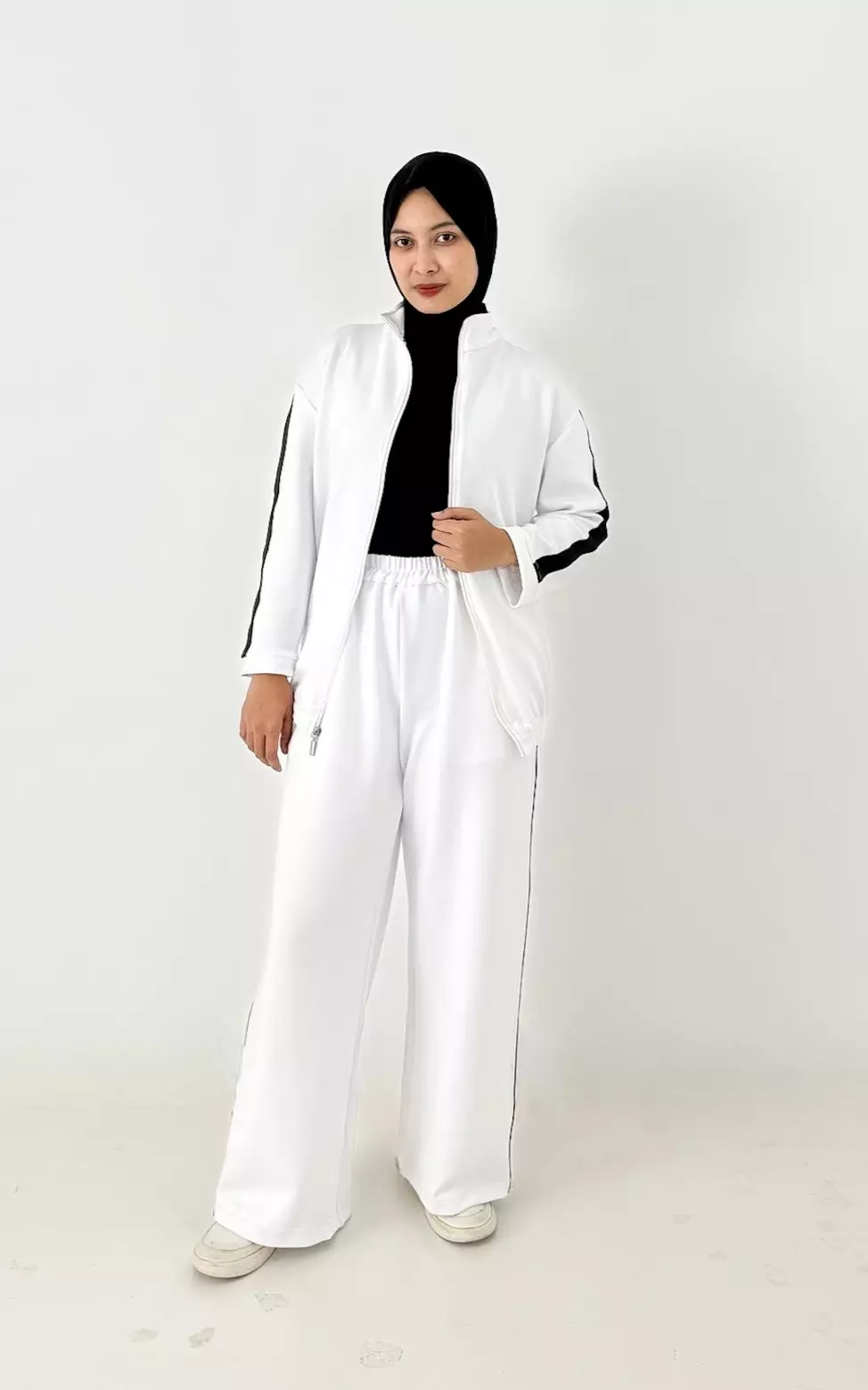 Set Sporty Kulot Whitney PUTIH Setelan Jaket Kulot Olahraga