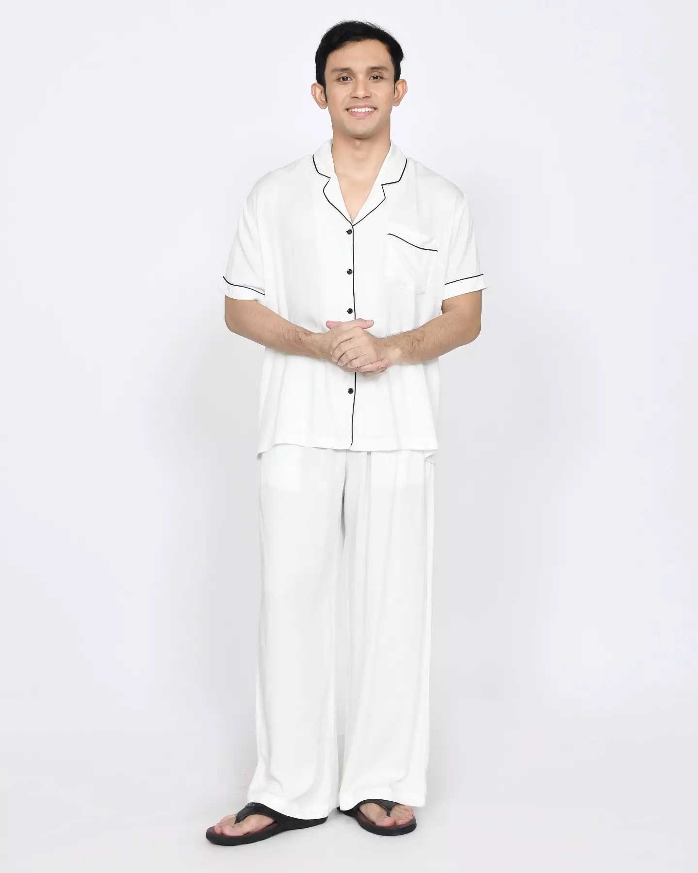 Setelan Baju Tidur Pendek Piyama Pria Plain [PUTIH] One Set Sleepwear Pajamas Material Katun Size M-XXL