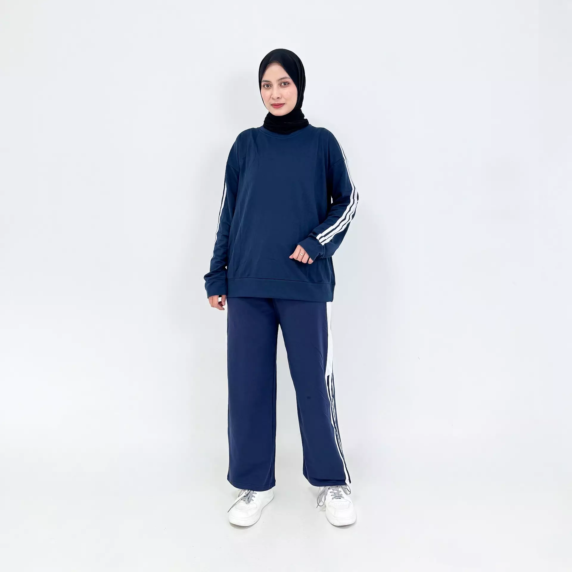 Setelan Celana Lebar Sweat Joanita - Matching Set Sporty Wanita NAVY
