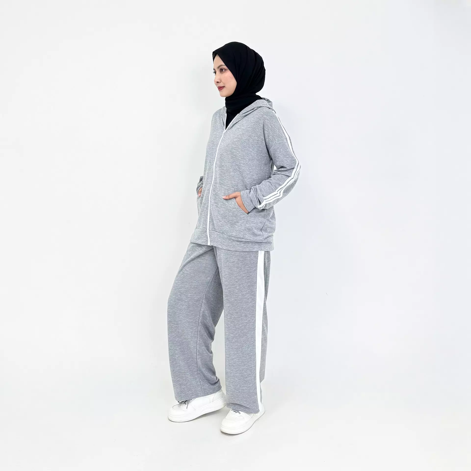 Setelan Celana Training Mandasya | Metching Set Sweat Sporty ABU ABU