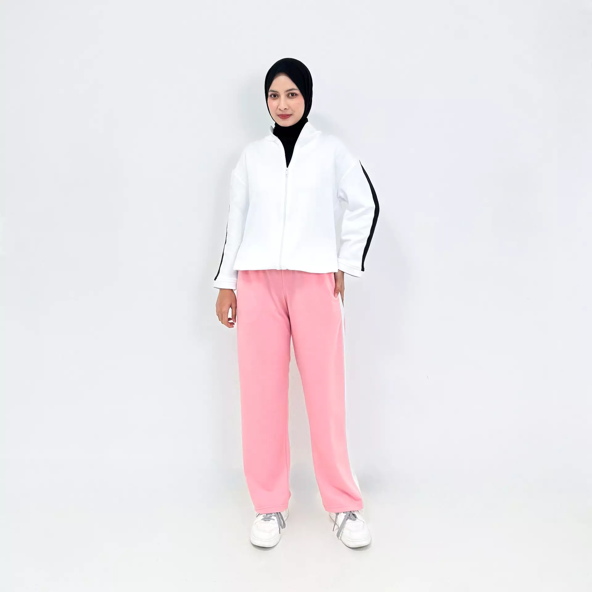 Setelan Jaket Sporty PUTIH- PINK Onset Training Panjang Wanita