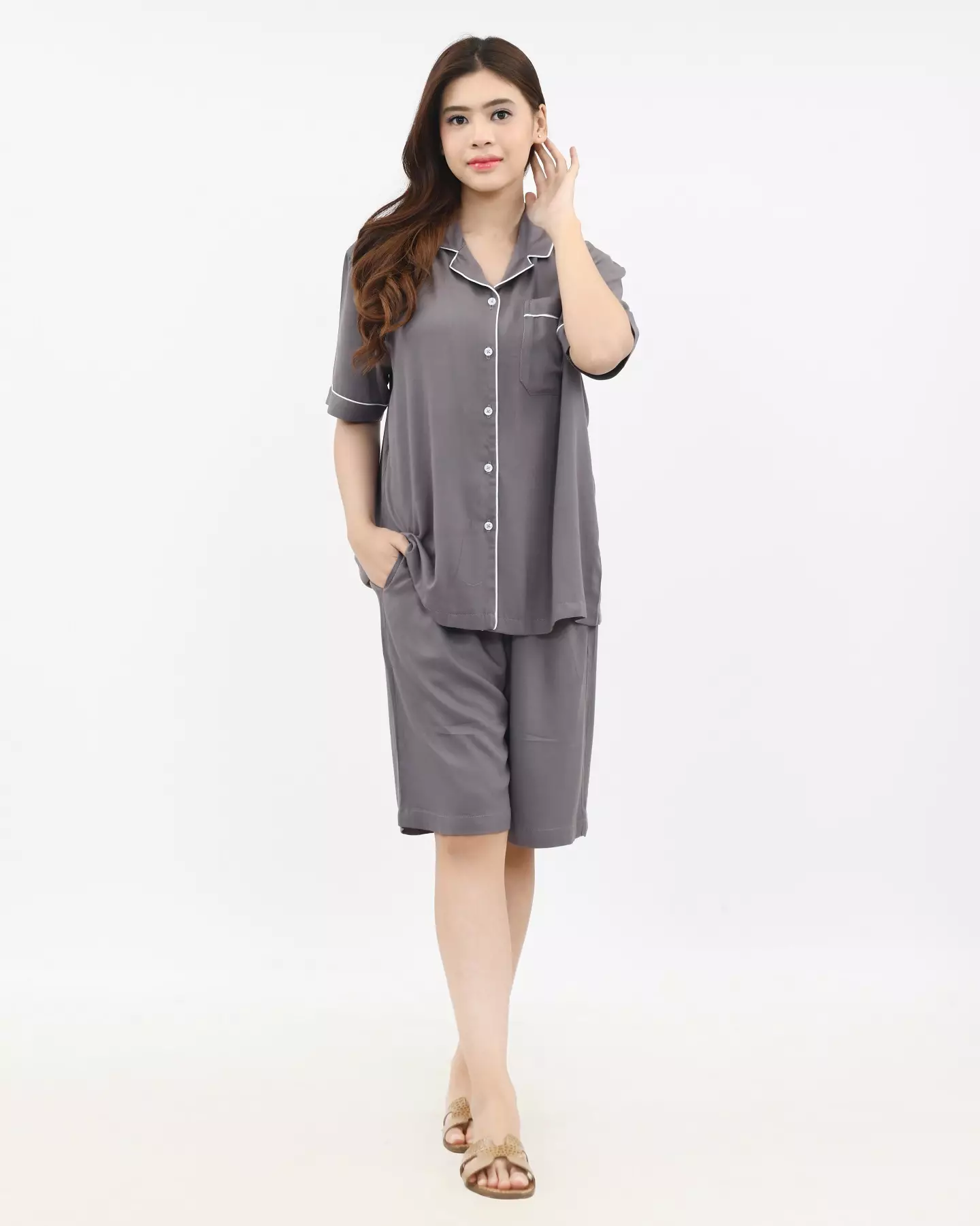 LEZAHRASIGNATURESetelan Piyama Katun Wanita Keisha [ABU ABU] SIZE L-XXL Baju Tidur Short Sleeve Short Pants Plain Sleepwear699000.00349000.00