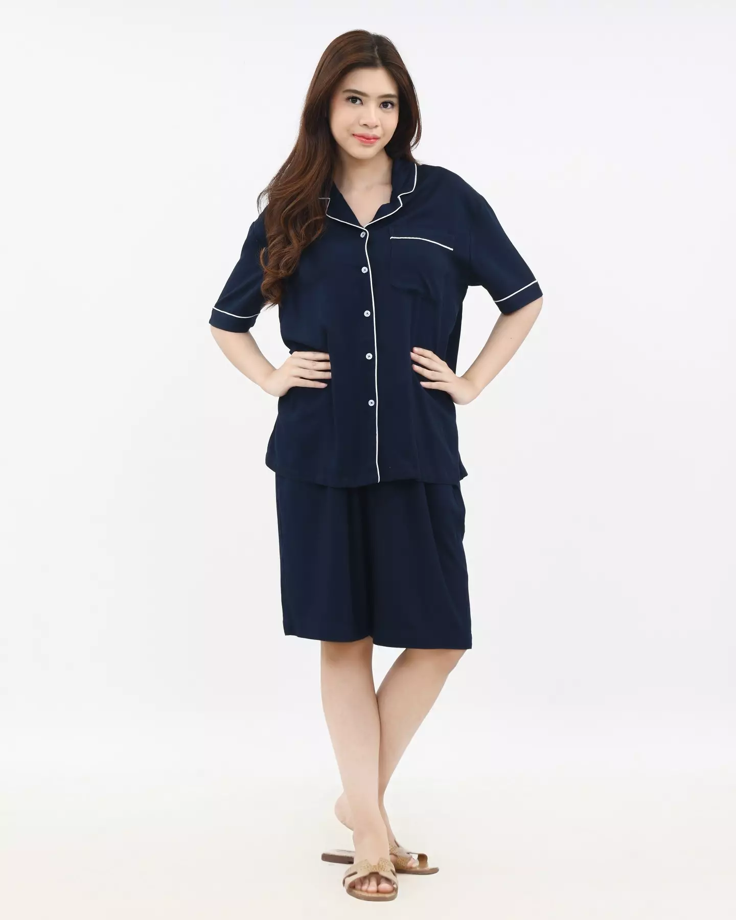 LEZAHRASIGNATURESetelan Piyama Katun Wanita Keisha [BIRU NAVY] SIZE L-XXL Baju Tidur Short Sleeve Short Pants Plain Sleepwear699000.00349000.00