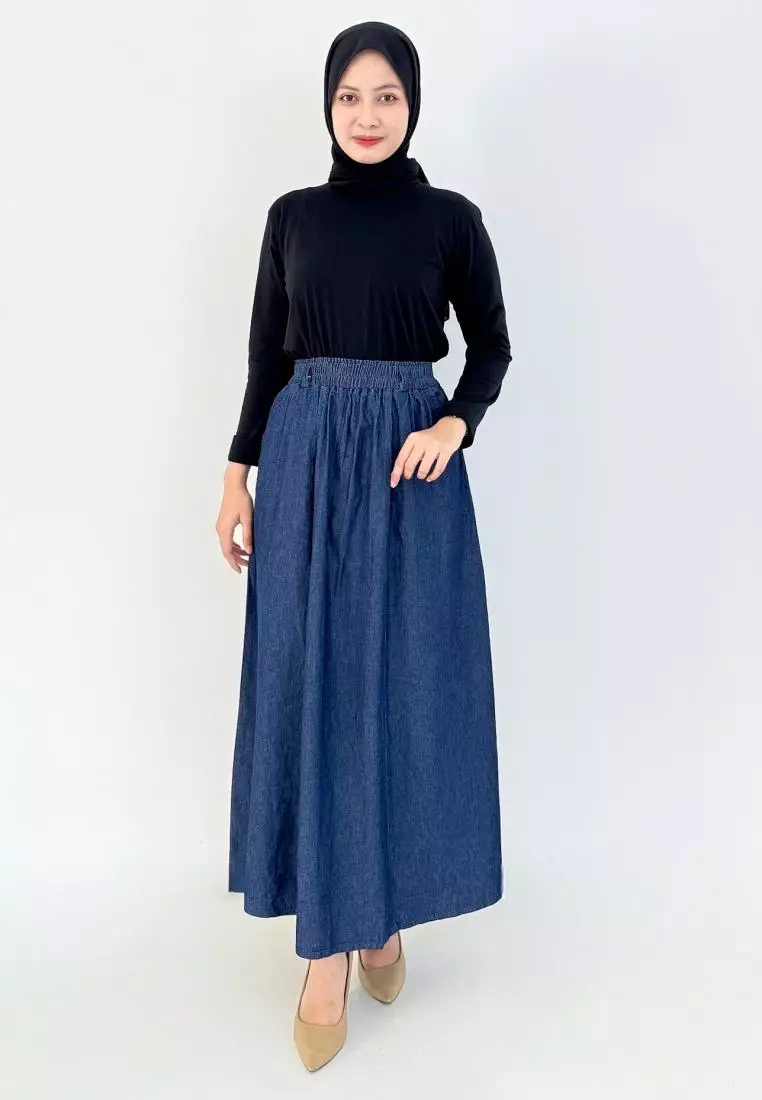Tina Denim Flare Skirt (Rok Jeans A-Line) Dark Blue