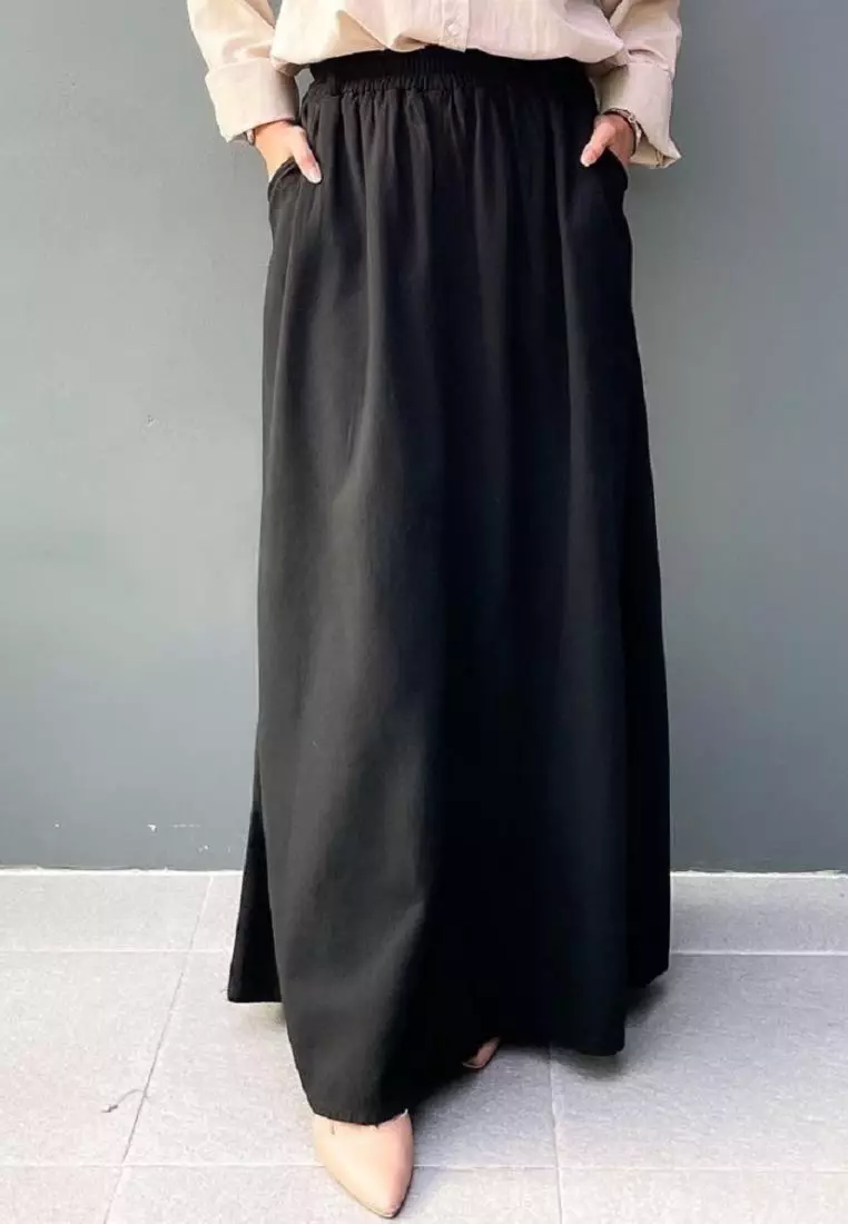 Tina Flare Denim Skirt (Rok Panjang Muslim Wanita A-Line) Panjang 101 cm