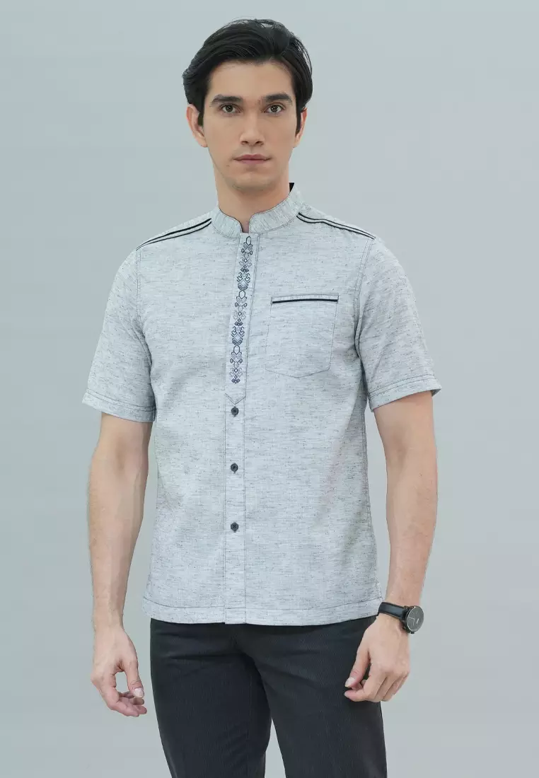 LGSLGS - Baju Koko - Single Pocket Motif Garis Hitam - Abu Cerah - JSH.385.S2029KF.421.C599800.00449850.00