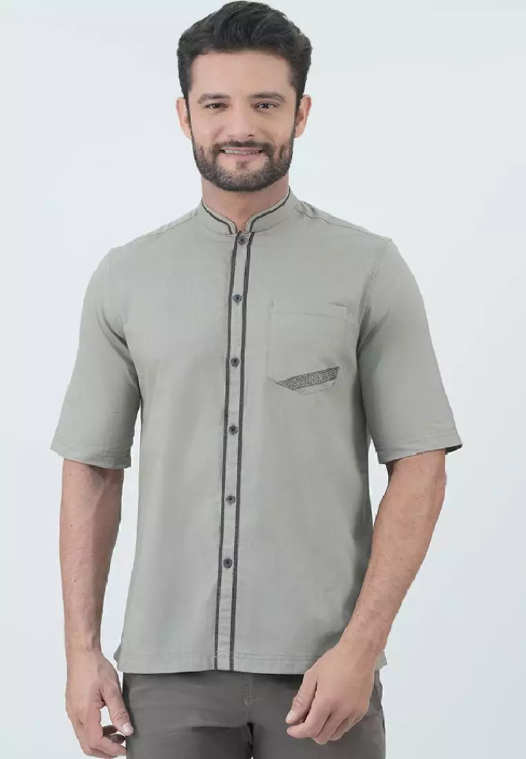 LGS - Baju Koko - Variasi Garis Hitam - Single Pocket - Olive Cerah - CSH.285.S2039K.431.C