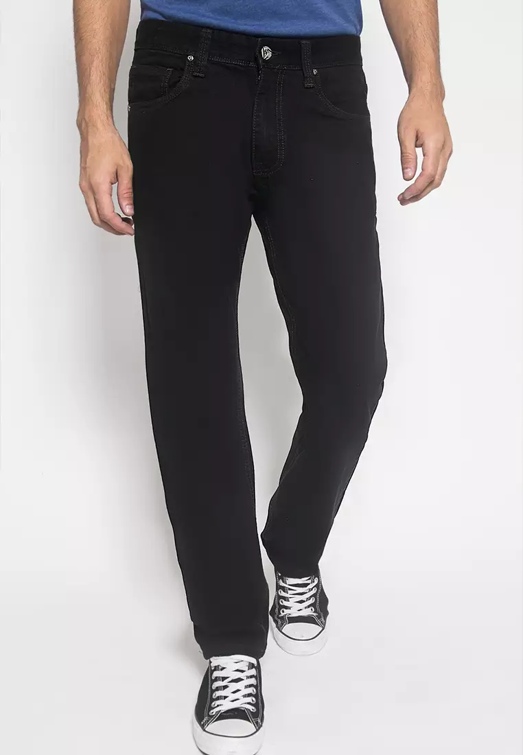 LGSLGS - Celana Panjang Jeans Casual Pria Warna Hitam Polos Slim Fit - JSF.449.100.045.C559800.00279900.00