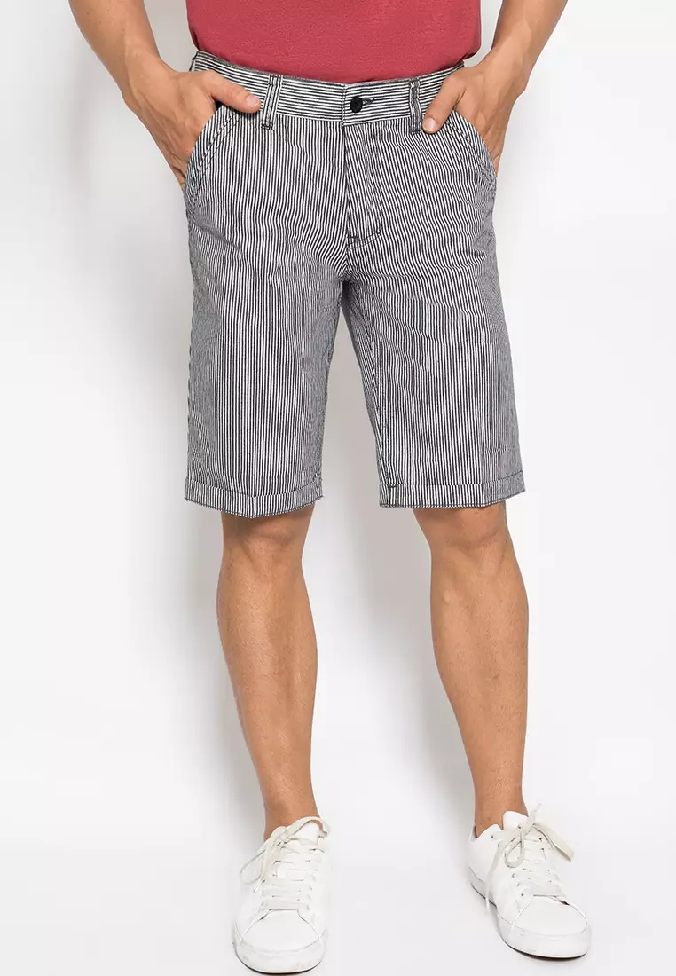 LGSLGS - Celana Pendek Casual Pria Warna Abu-Abu Motif Garis-Garis Reguler Fit - CSS.440.054.105.C429900.00214950.00