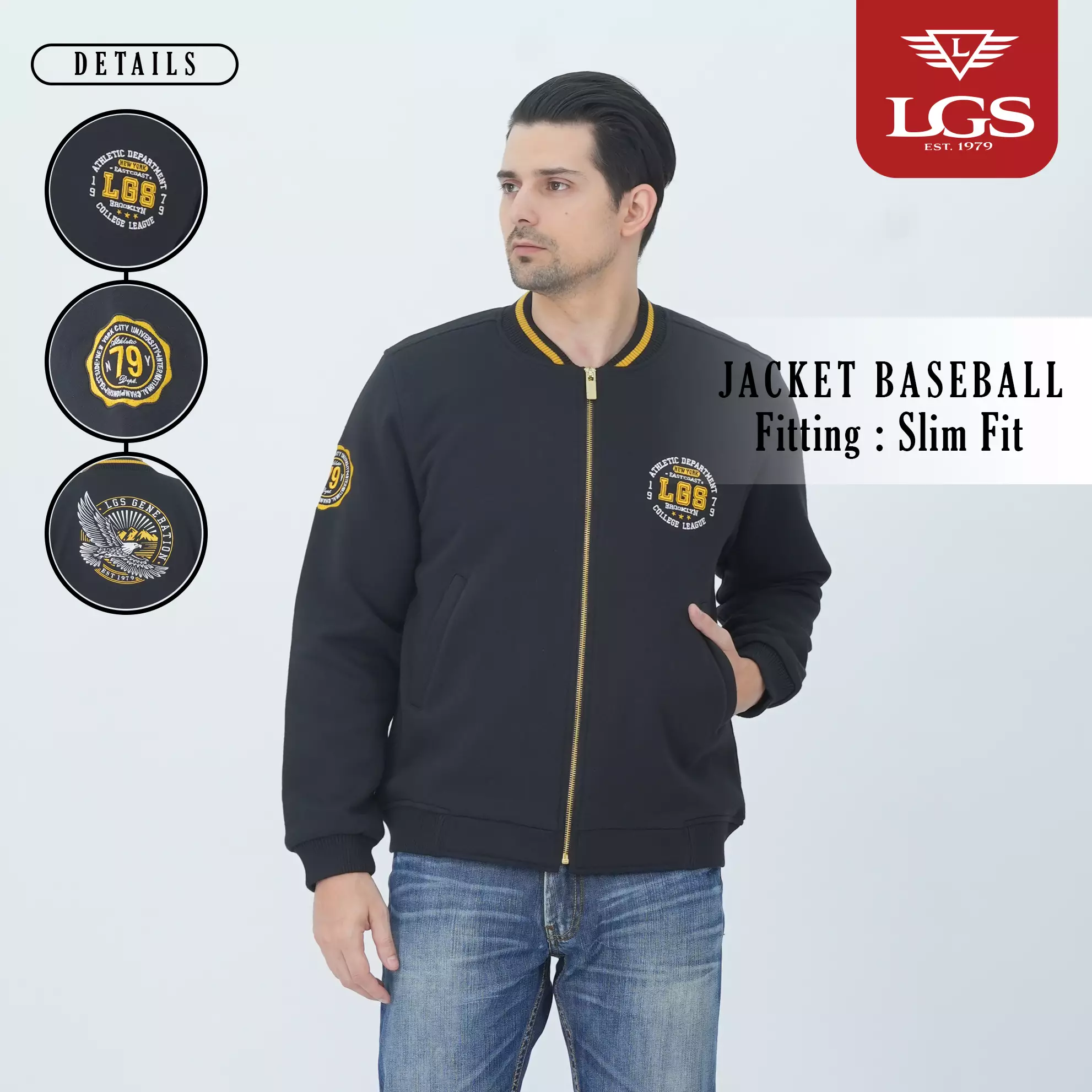 LGSLGS - Jaket Pria - Jaket Baseball - Full Zipper - Bordir Logo - Hitam - JJK.574.214.001.C949800.00712350.00