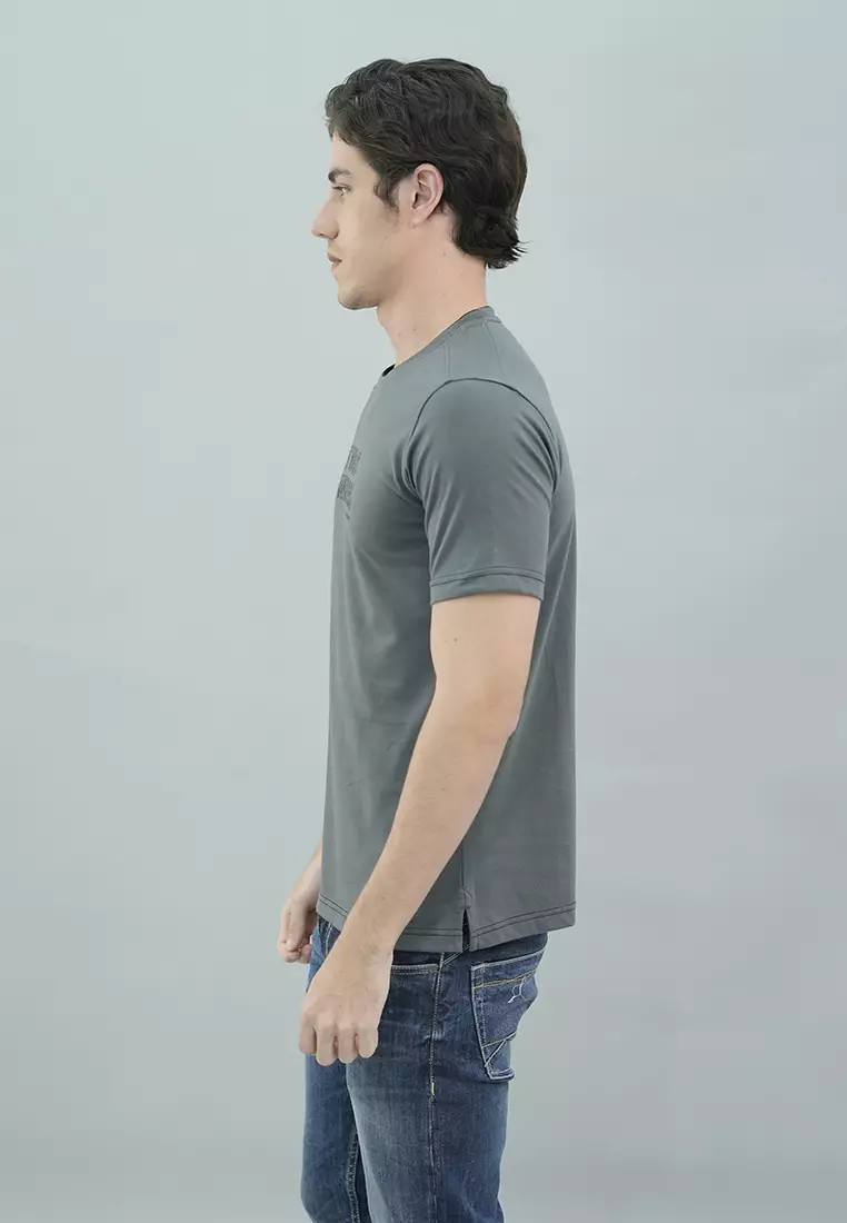 LGS - Kaos Casual Lengan Pendek Gambar Sablon "Art Has No Rules" Warna Abu Slim Fit - JTS.322.S3210F.01.C