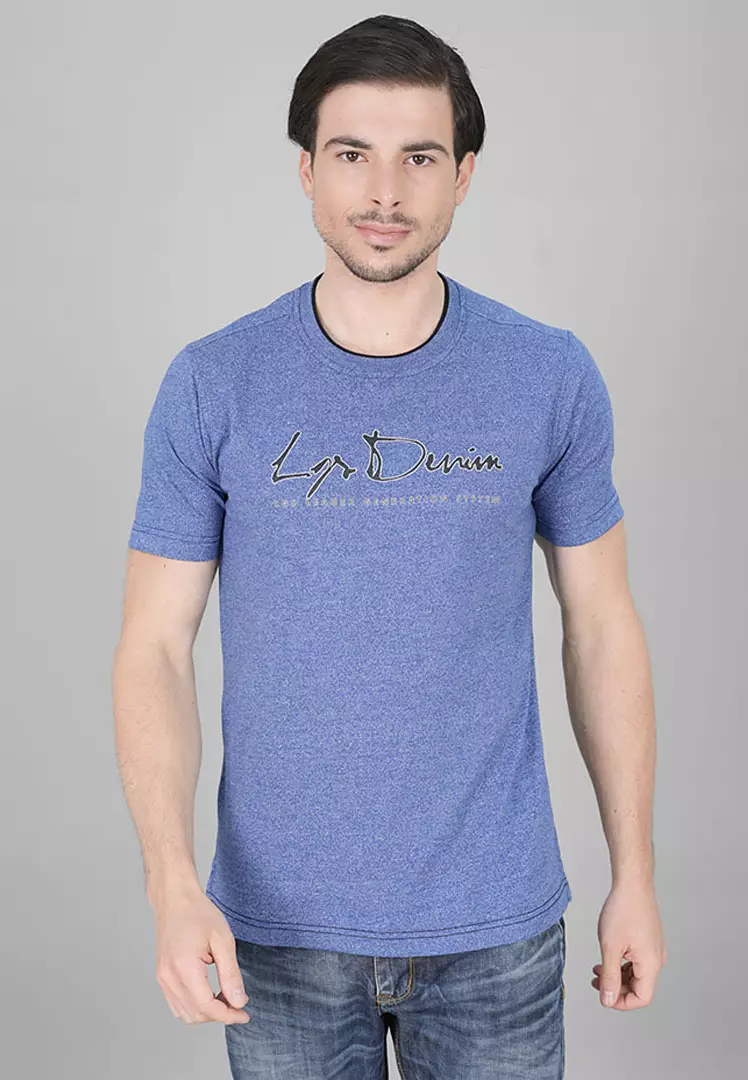 LGS - Kaos Casual Pria - Lengan Pendek - Motif Sablon - Biru - LGS Denim - JTS.323.S3077F.01.C