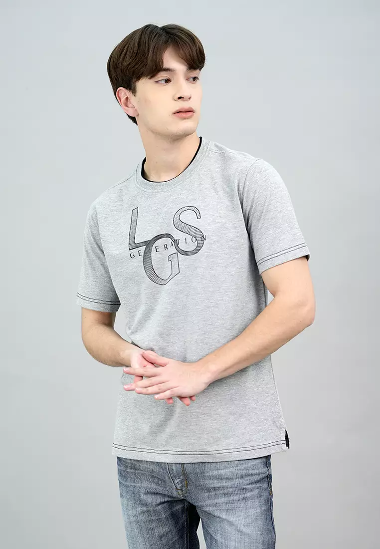 LGSLGS - Kaos Casual Pria Lengan Pendek Motif Sablon Warna Abu-Abu Slim Fit - JTS.322.S3333F.21.C379800.00284850.00