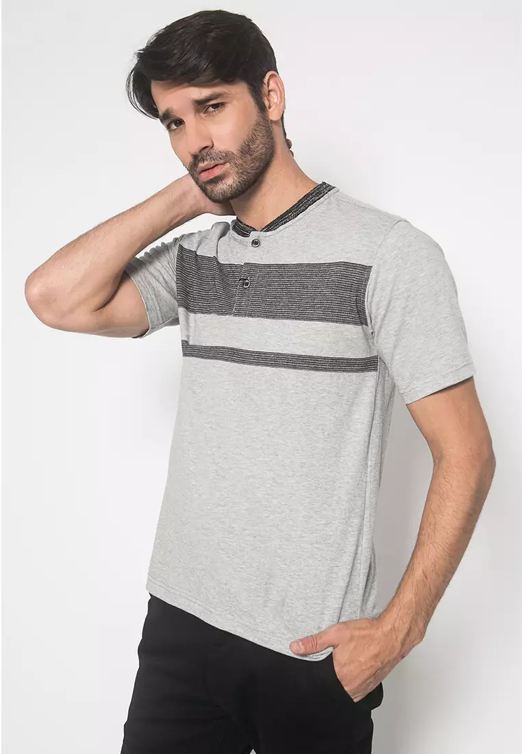LGS - Kaos Casual Pria - Plaket - Block Abu - Abu - Regular Fit