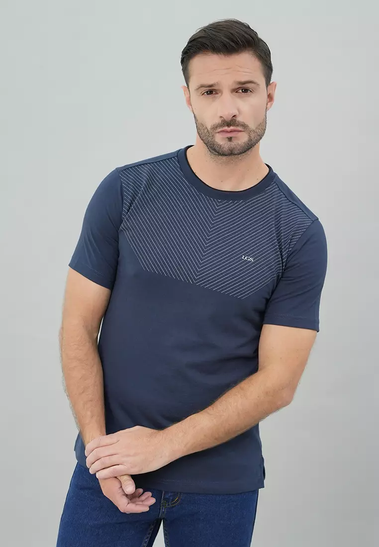 LGSLGS - Kaos Casual Pria Warna Navy Motif Garis Halus Slim Fit - JTS.322.S3207F.01.C379800.00284850.00