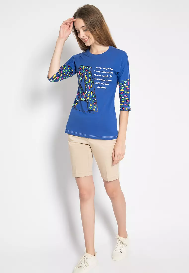 LGS - Kaos Casual Wanita - Lengan Panjang 3/4 - Biru - Gambar Sablon - LTS.555.T976.081.C-L/S