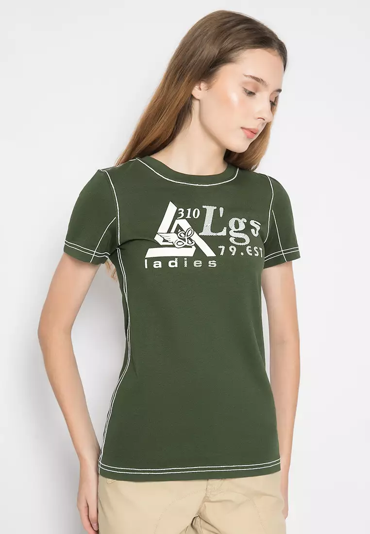 LGSLGS - Kaos Casual Wanita - Lengan Pendek - Gambar Sablon - Warna Hijau Army184800.0097000.00
