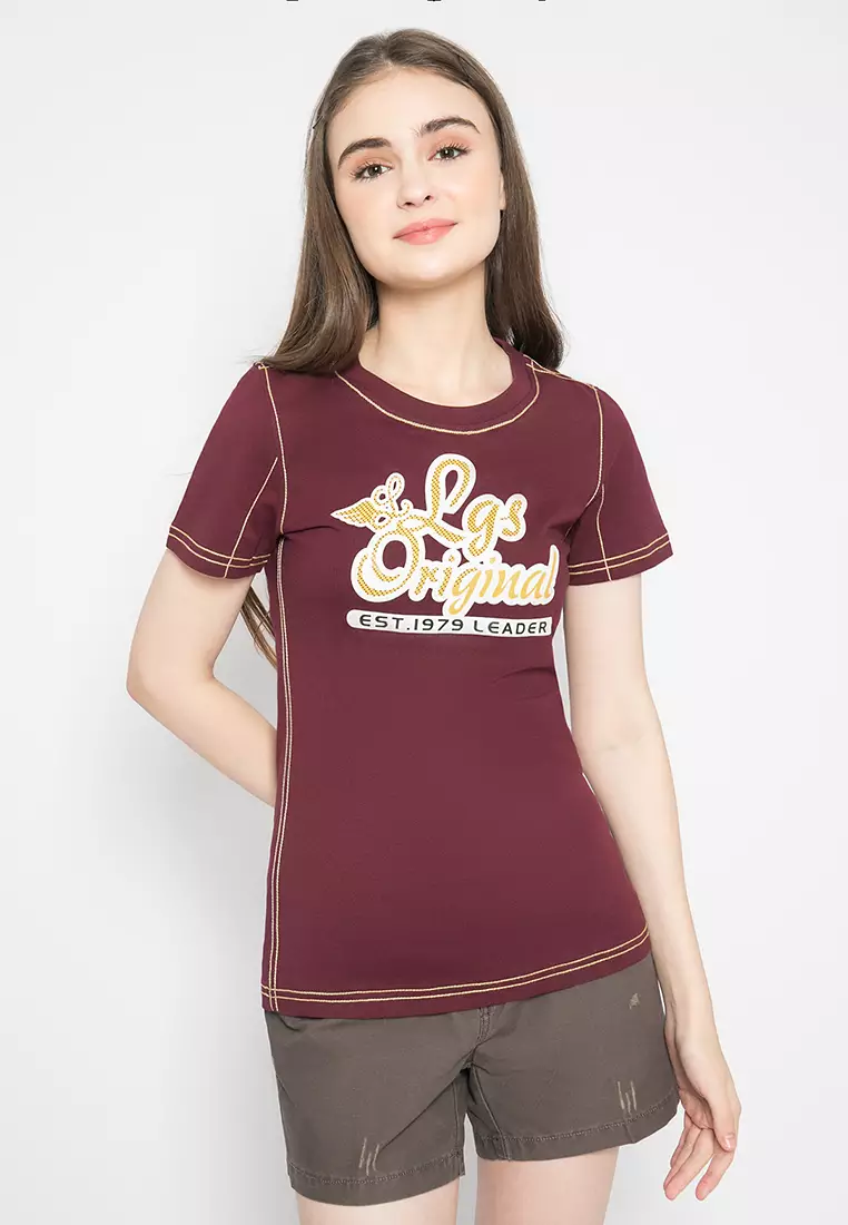 LGSLGS - Kaos Casual Wanita - Lengan Pendek - Warna Maroon - Gambar Sablon LGS Original - LLTS.555.T714M.021.7C189800.0097000.00