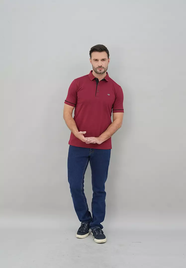 LGSLGS - Kaos Polo Casual Pria Kerah Wangky Motif Simple Warna Merah Slim Fit - JWS.325.J3350F.01.C459800.00298870.00