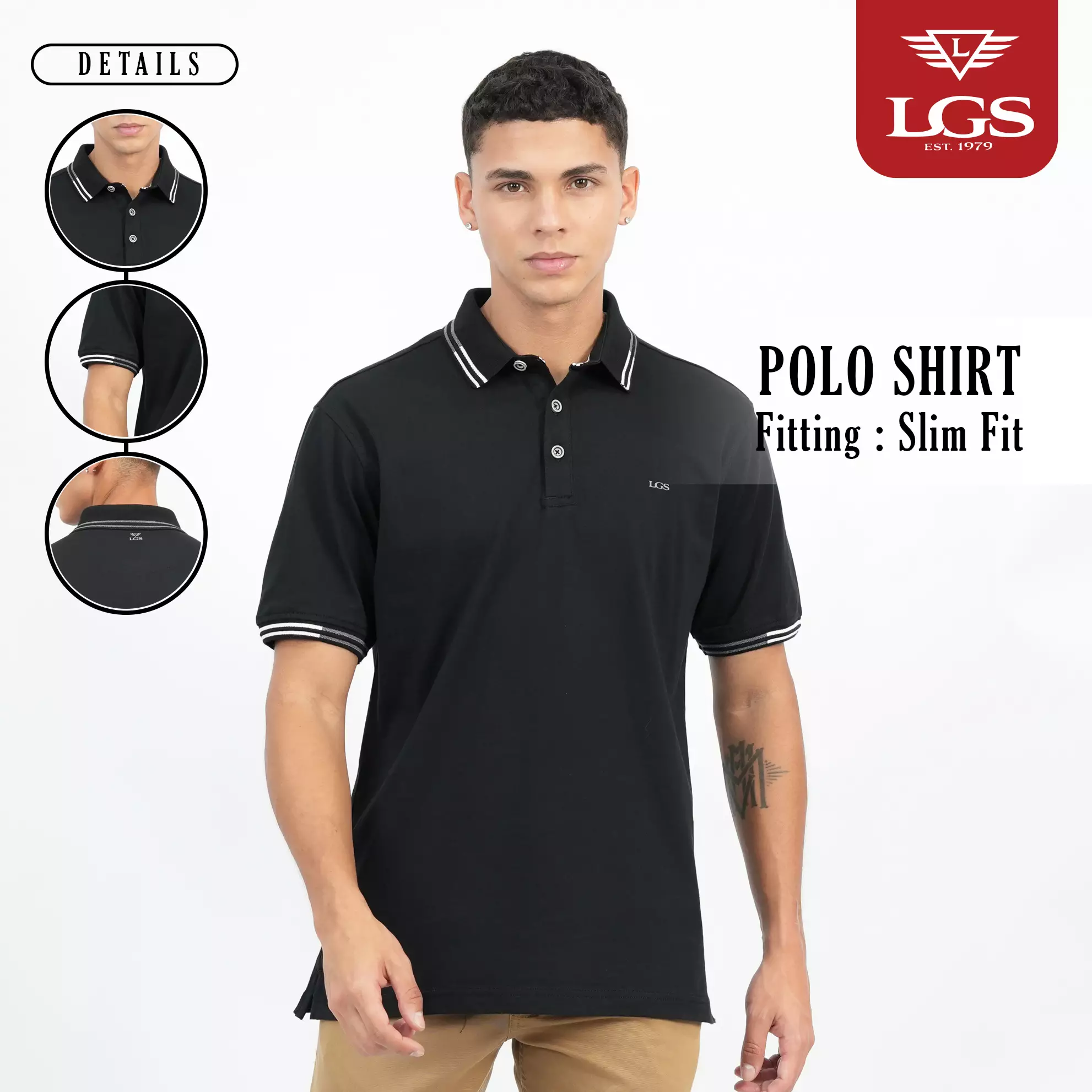 LGSLGS - Kaos Polo Pria - Lengan Pendek - Hitam - Kerah Stipe - Katun - Slim Fit - JWS.325.S3642F.33.C479800.00359850.00