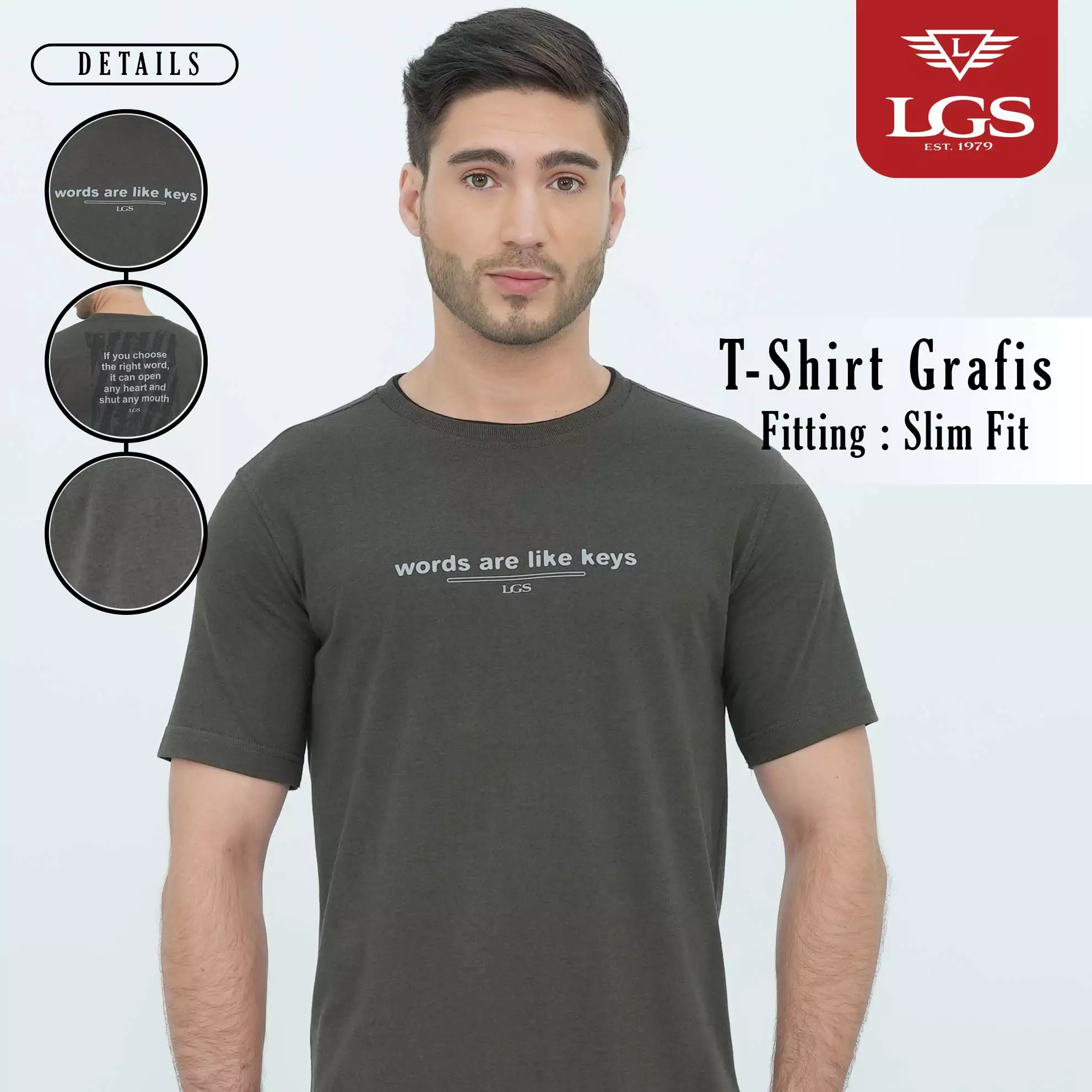 LGS - Kaos Pria Lengan Pendek Katun - Kaos Polos Bersablon Tulisan - Slim Fit - Hijau Army - JTS.322.S3503F.01.C
