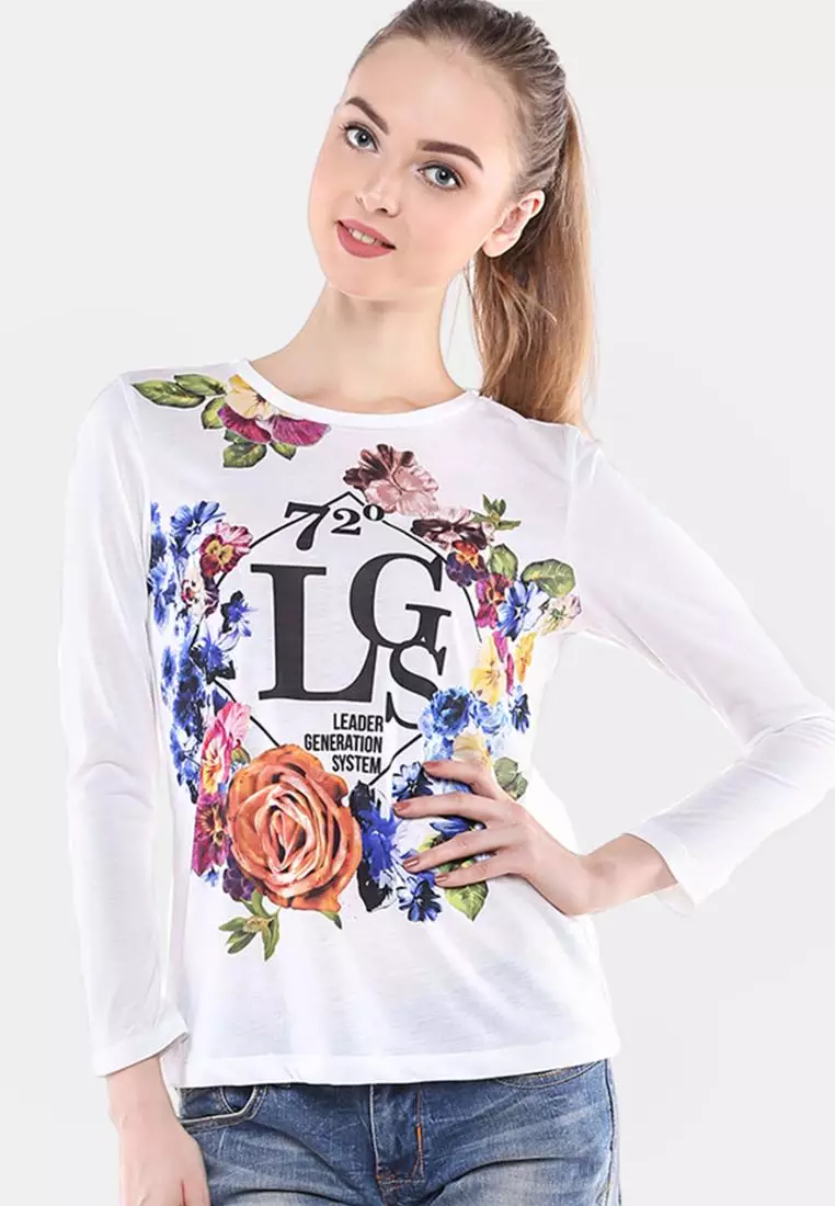 LGSLGS Kaos Wanita Lengan Panjang Slim Fit Putih Sablon Gambar Bunga269800.00126000.00
