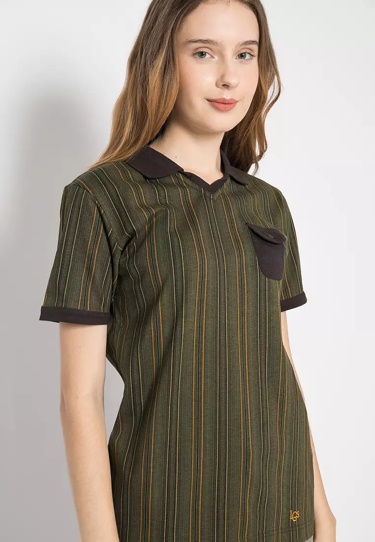 LGSLGS - Kaos Wanita Motif Garis-Garis Warna Coklat LLTS.520.HD001.033.7C219800.0097000.00