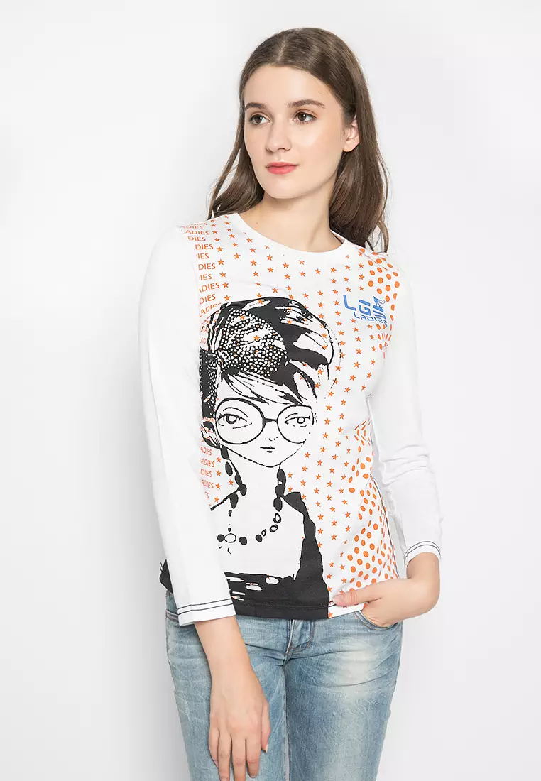 LGSLGS - Kaos Wanita Motif Sablon Warna Putih LTS.555.K909M.019.C-L/S209800.00126000.00