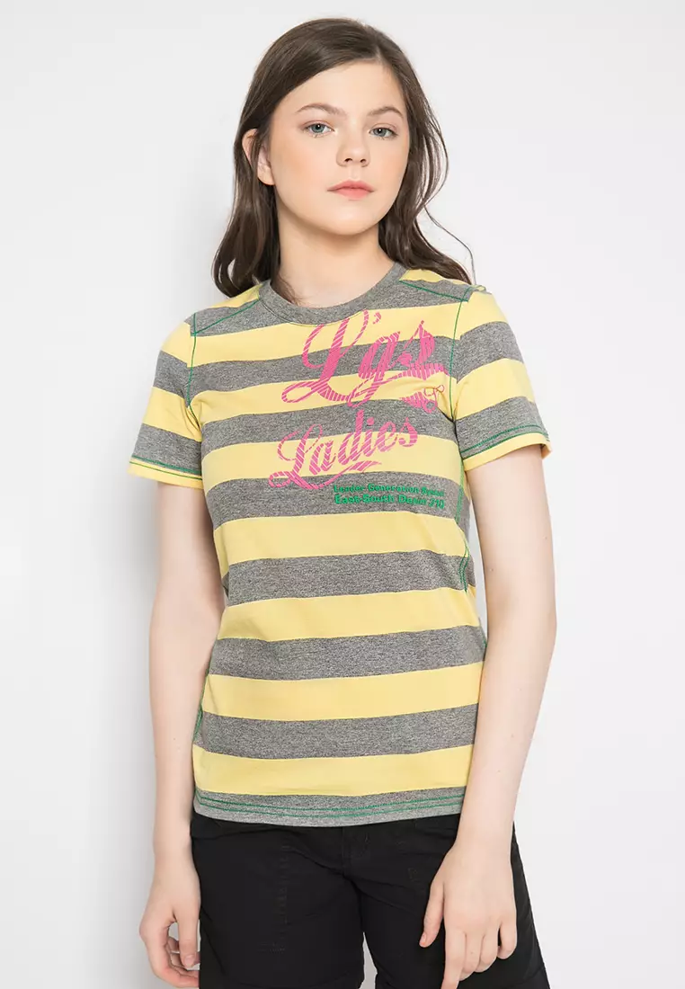 LGSLGS - Kaos Wanita Motif Salur Warna Kuning LTS.520.T879M.096.C209800.0097000.00