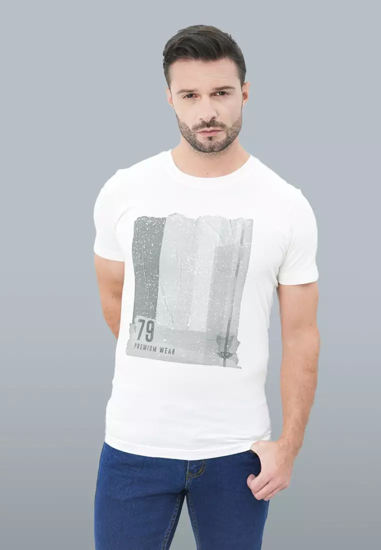 LGS - Kaos Youth Casual Pria Lengan Pendek Motif Sablon Warna Putih Slim Fit - GTS.870.N258.22.C