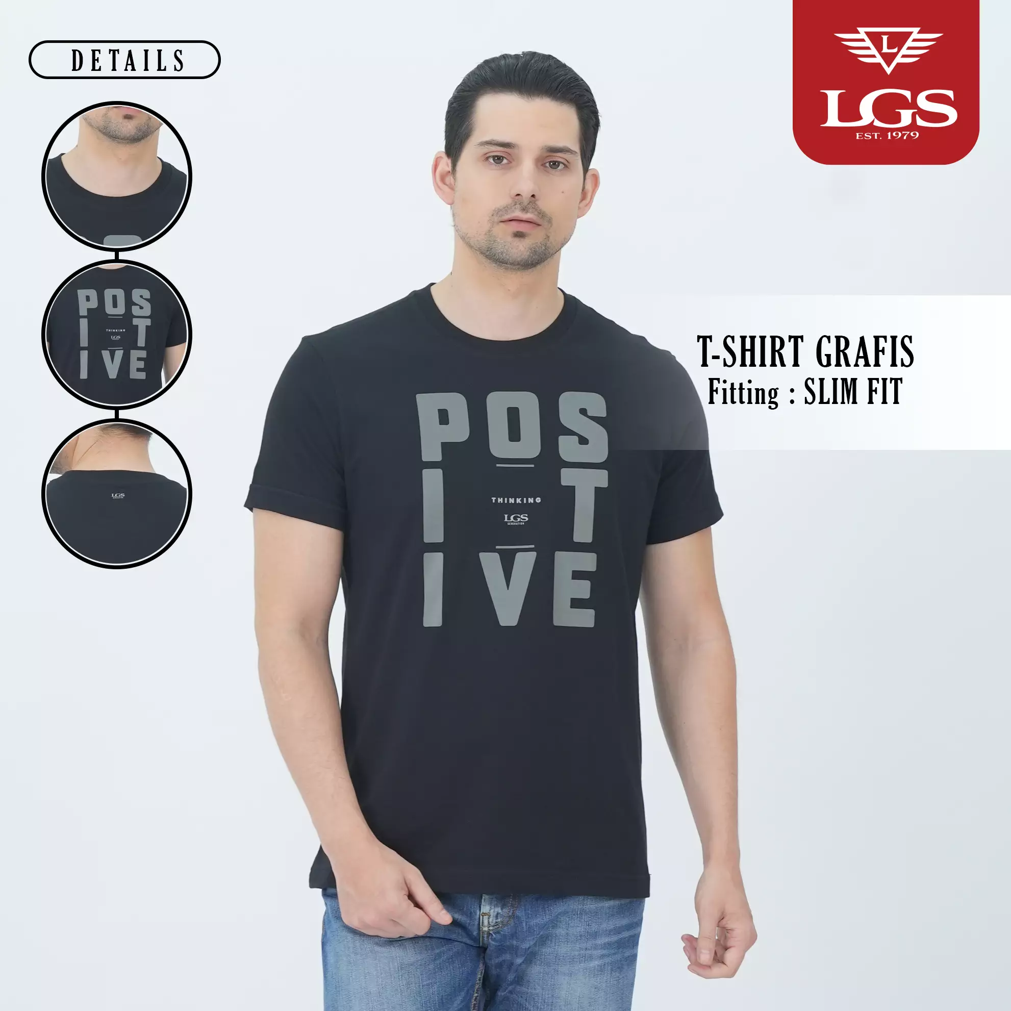 LGSLGS - Kaos Youth - T-Shirt Casual Pria - Slim Fit - Motif Sablon Tulisan Positive - Warna Hitam - GTS.878.N287.33.C243700.00182775.00